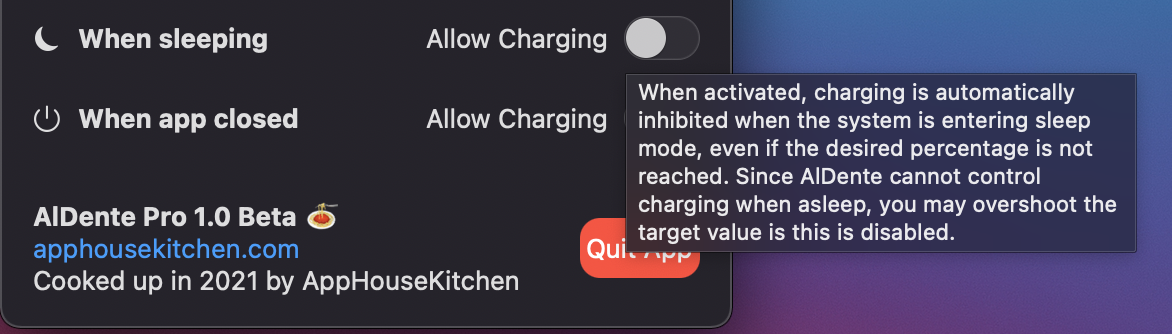Confusion about Pro beta version "Allow Charging" option when sleeping. #160