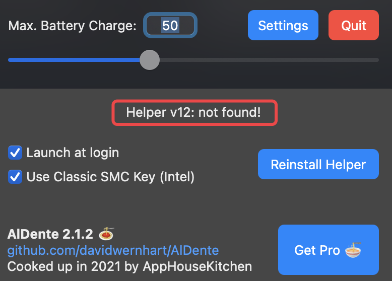 Please uninstall the old version of AlDente before installing the new one.