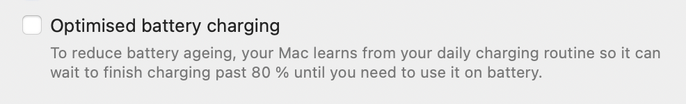 I don't really get how the optimised battery charging works. Had that checked since day one on both my iPhone and M1 mac, but haven't seen it stay at 80% once.