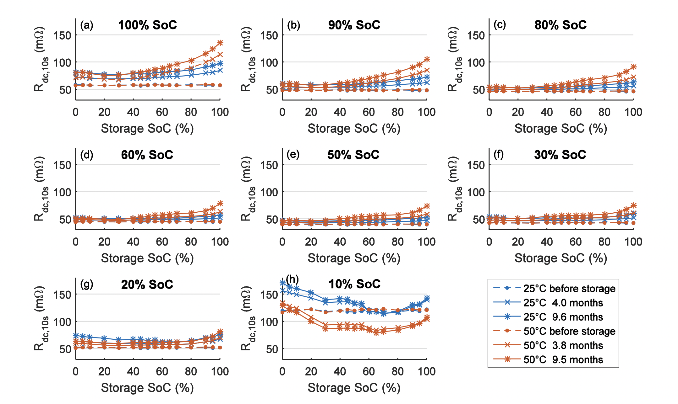 CellVoltagekey though, 3.7V would be under 20% soc (on my machine at least) when not under any load (i.e. when connected to the mains). So then that leads to a natural question: should optimal storage condition be based on SOC or cell voltage? On one hand voltage curves will differ between compositions and additives and so may not be generally applicable, but on the other voltage seems more indicative of the underlying chemistry compared to SoC where manufacturers may set their own cutoffs.For instance, the study you linked which discussed resistance after aging at different storage SoC used a 3.0V cutoff as 0% SOC I believe. I have not actually checked on my machine, but I'd suspect on the macbook 0% might be 3.3 or slightly higher. The