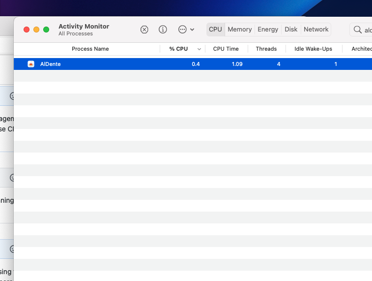M1 Mac fellas, I have a theory for establishing a stable cpu consumption of AlDente. It seems that if you give AlDente a good 3 minutes (or more) BEFORE you plug in the charger, it uses low resources. If you were already running AlDente with high cpu usage, quit the program and restart it. If you see somewhere between 0.1%-0.3% cpu usage after plugging in the charger, I think you are good.