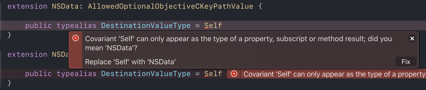 SelfinKeyPathGenericBindings.swift. Looks like an easy enough fix to replaceSelfwith the concrete type. Happy to submit a PR if that's the correct fix.@JohnEstropia commented on GitHub (Mar 5, 2020):