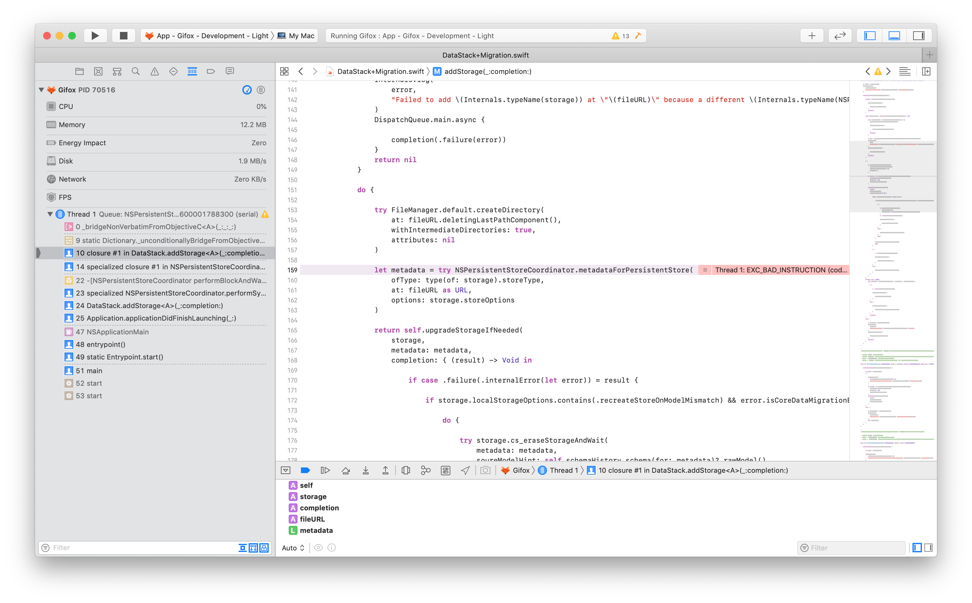 addStoragewould end up failing, which came in unexpected while passing.recreateStoreOnModelMismatch, but thinking about it again that's probably reasonable thing to do. So, I just ended up checking the result and recreating the storage manually, which should handle most cases of corrupt database.