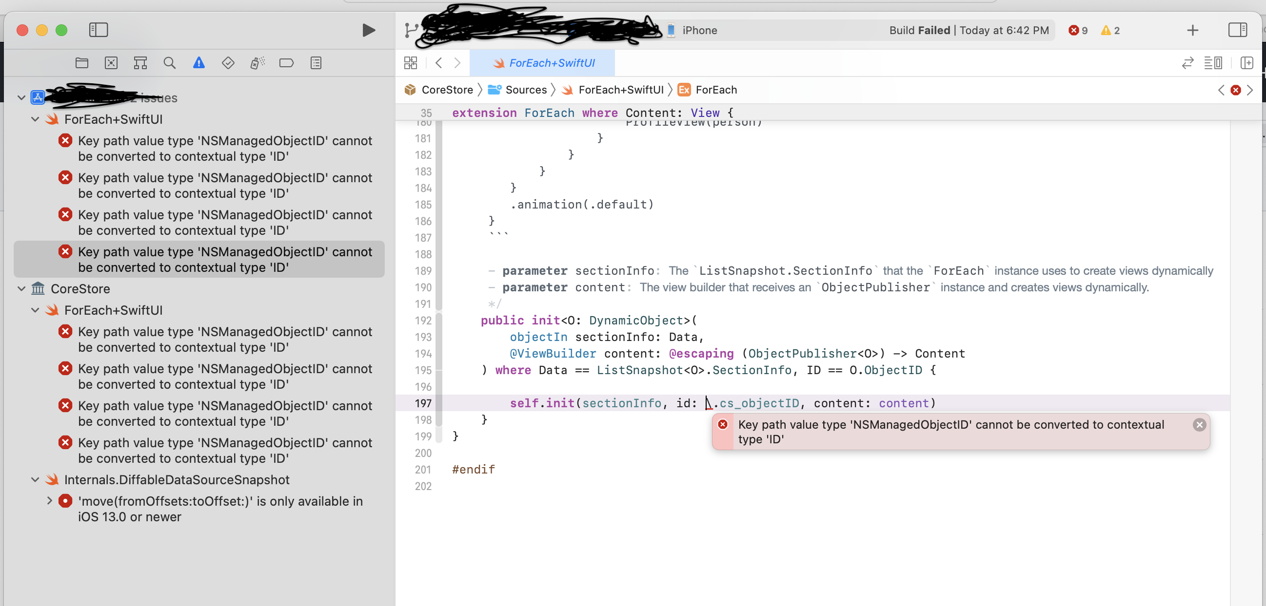 Please check the attached screenshot, I am facing an issue with CoreStore SPM when I switched to Xcode 14.0 in to