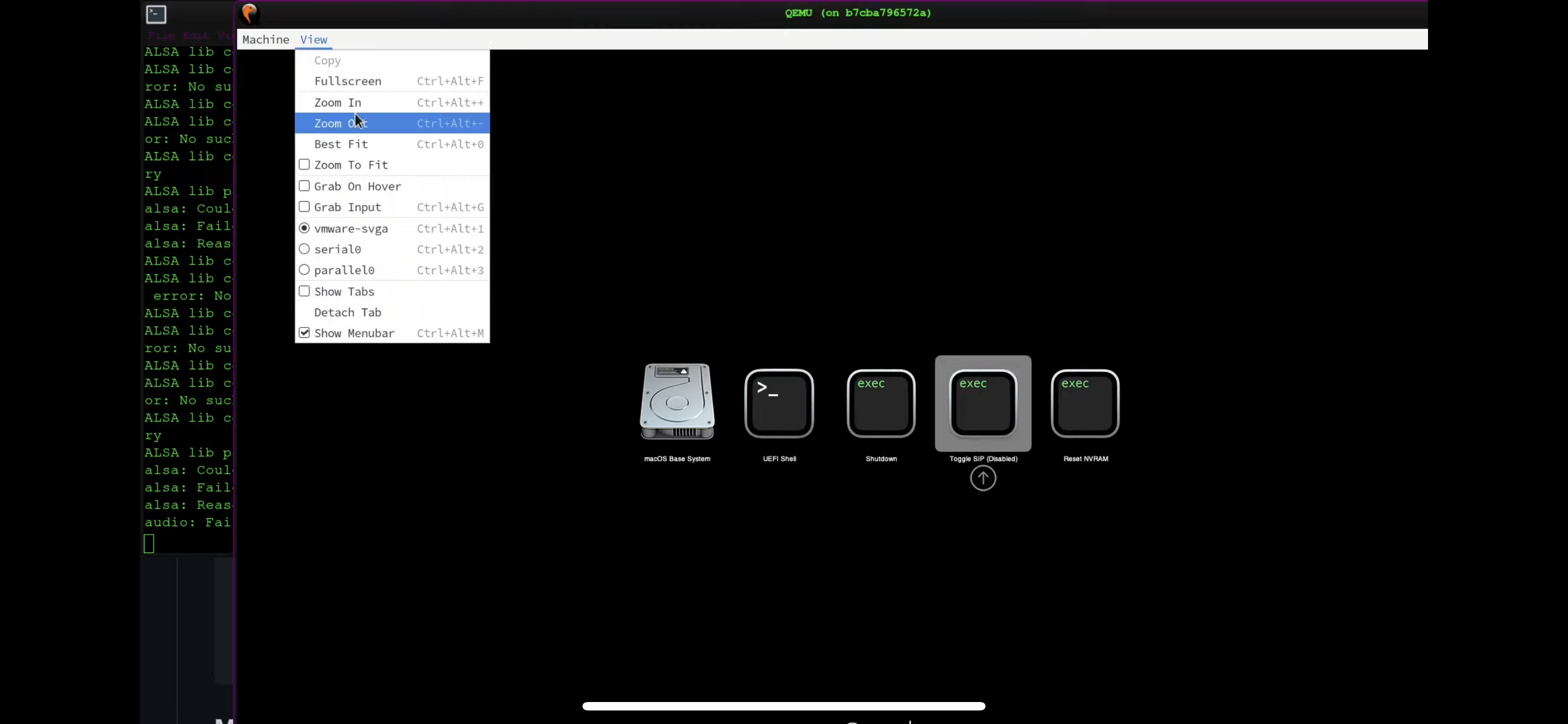 Indeed, I've used -e WIDTH=1440 and -e HEIGHT=900 to preserve the native format of my older MacBook Air's hardware in the Dockerized-OSX, so I'm not zooming the QEmu window at all.