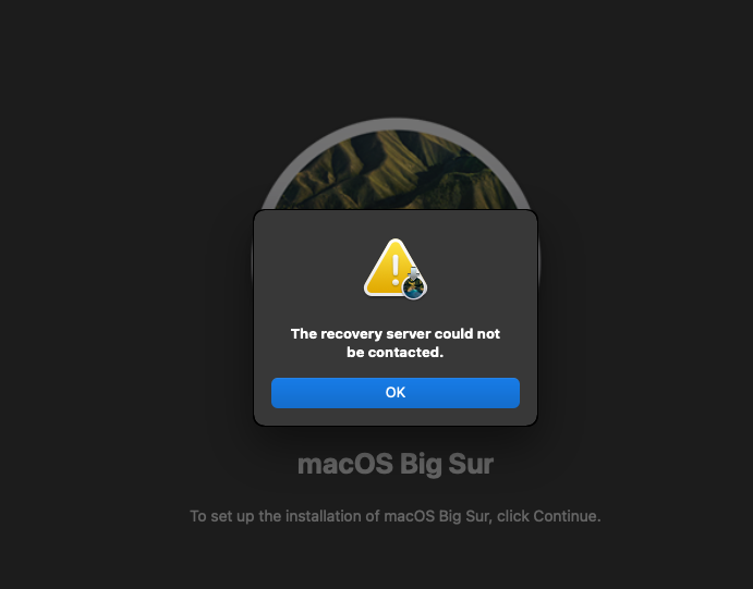 After creating a new partition, I am supposed to reinstall macOS. Some issues mention a button, and there is one when I press "Restart" and click "reinsall macOS Big Sur" but I run into this screen: