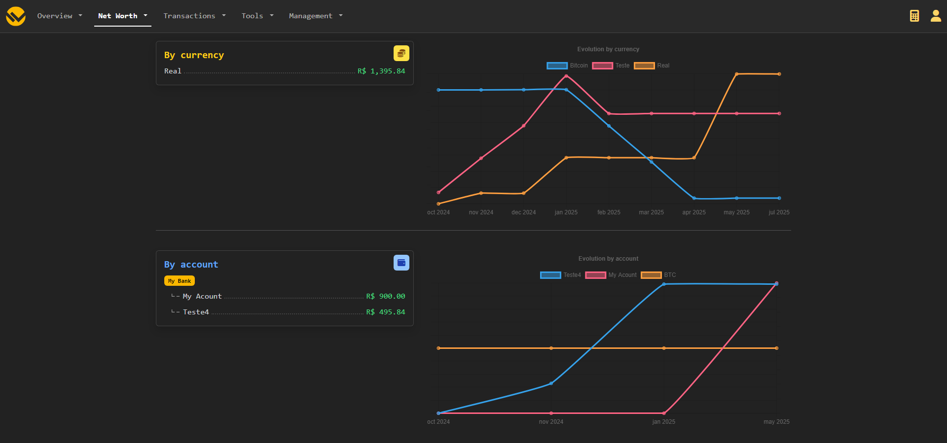 - Multiple accounts support: Keep track of where your money and assets are stored (banks, wallets, investments, etc.).