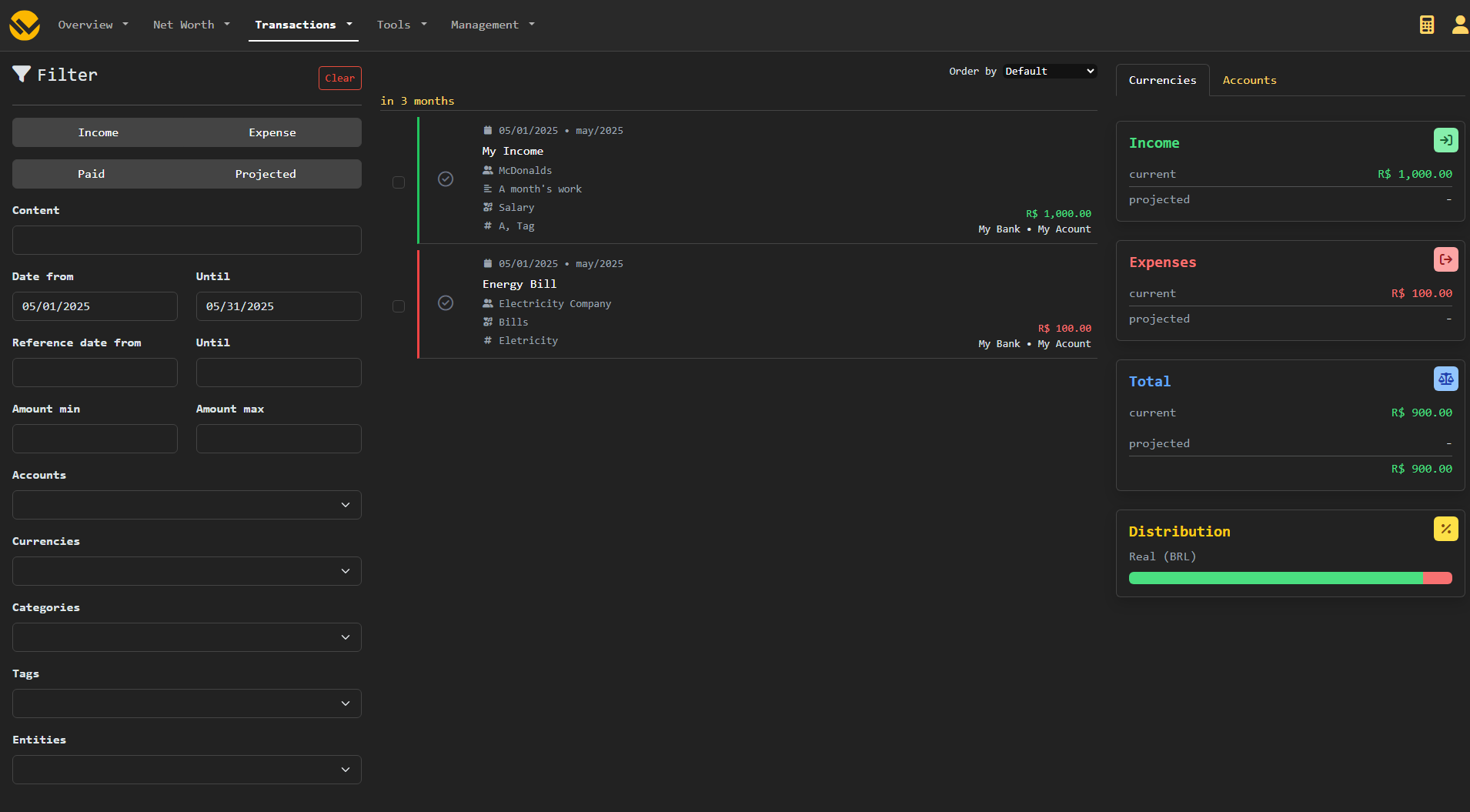 - Multiple accounts support: Keep track of where your money and assets are stored (banks, wallets, investments, etc.).