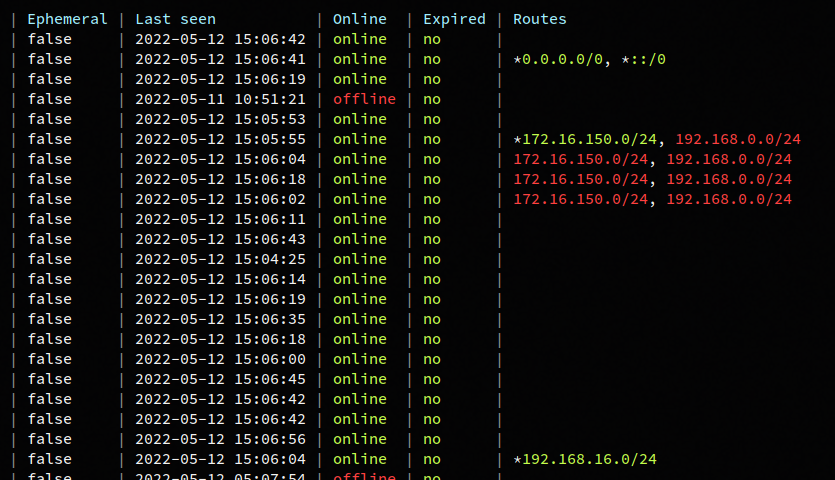 headscale route, there's also nowhere to list all nodes and routes.headscale node list --show-routes🔄 This issue represents a GitHub Pull Request. It cannot be merged through Gitea due to API limitations.