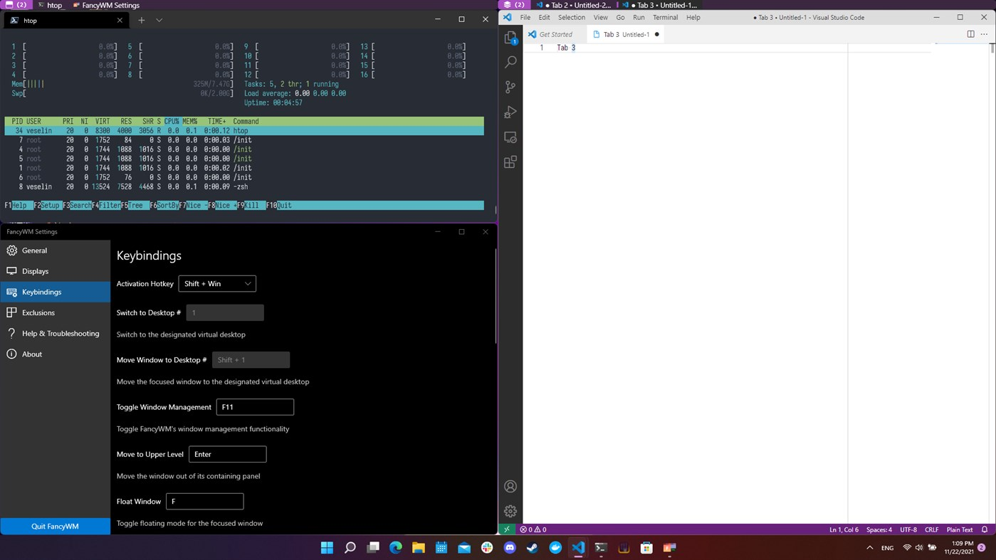 SW_HIDEis mostly a result of sticking with the conventions followed by other Windows window managers when I was learning how to work with the Win32 API (nog, workspacer).The workspaces feature was written first, which made use of the window hiding functionality and it just got reused for the container stack feature.