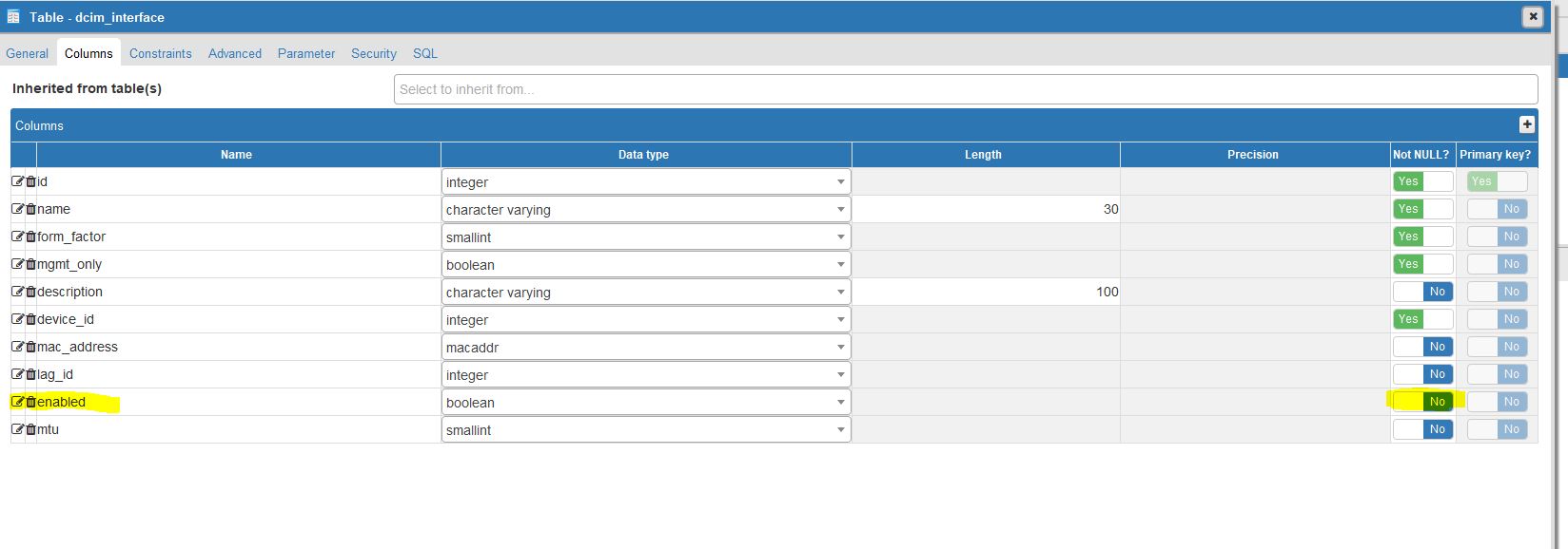 i have go into the database table " dcim_interface" and change table's Columns "enabled" to No "Not NULL?". and it allow for me to add interface in devices.
