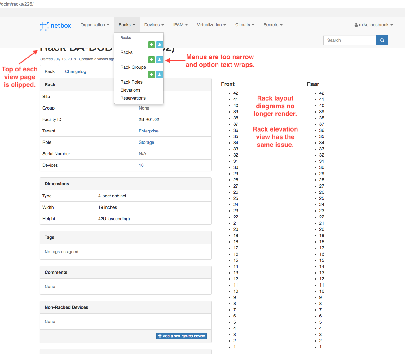 I'm having several Django view layout/rendering issues after upgrading from v2.3.3 to v2.4.2. These display issues are replicated in multiple browsers, on multiple machines. Sample screenshot attached.