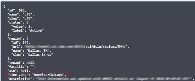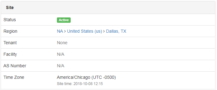 Time Zoneis listed at both with a name anda UTC offset. However, when the site details are gathered from the API, only the name of the