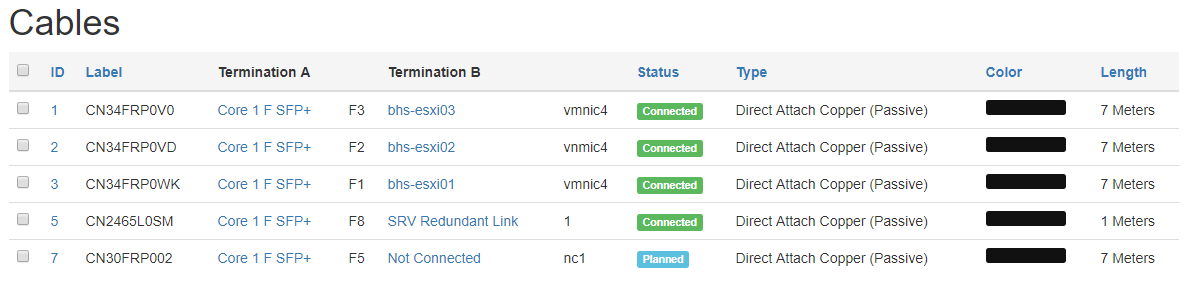 Also note in the screenshot is my cobbled together "Not Connected" Device assigned to no rack but I have to make each interface before assigning the cable.