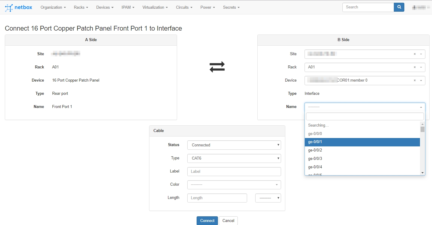 Connection is created, however the error page is displayed. I've tried creating rear port connections first however this still did not produce a clean addition of a link.