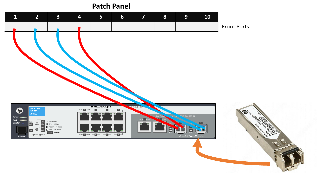 One fiber cable on one switch interface is connected to port1 in the patch panel but the second fiber cable is connected to port4 in the patch panel. We can fill this situation in NetBox. This is often habbening on ST panels etc.