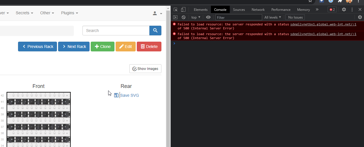 Now I created a second rack and moved all devices from the rear to the other one which resolved the issue.