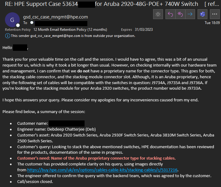 @jeremystretch Can't get more clear than the attached. Aruba/HPE (formally HP Procurve) have no name for the proprietary stacking connector types used for the stacking modules for the 2920,2930M,3800 and 3810M series' of switches.