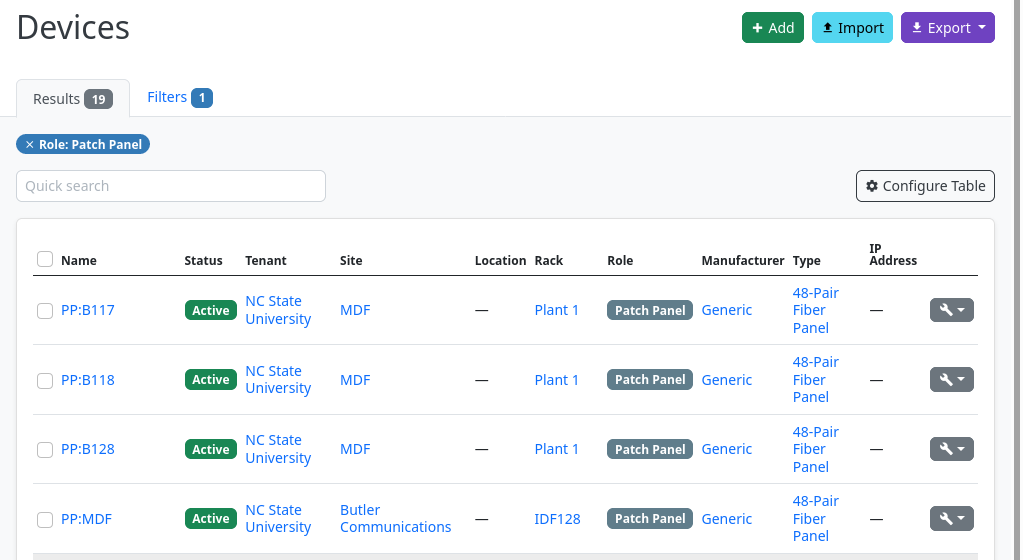 So you have to search for Patch Panel in the Device List to see the additional columns.