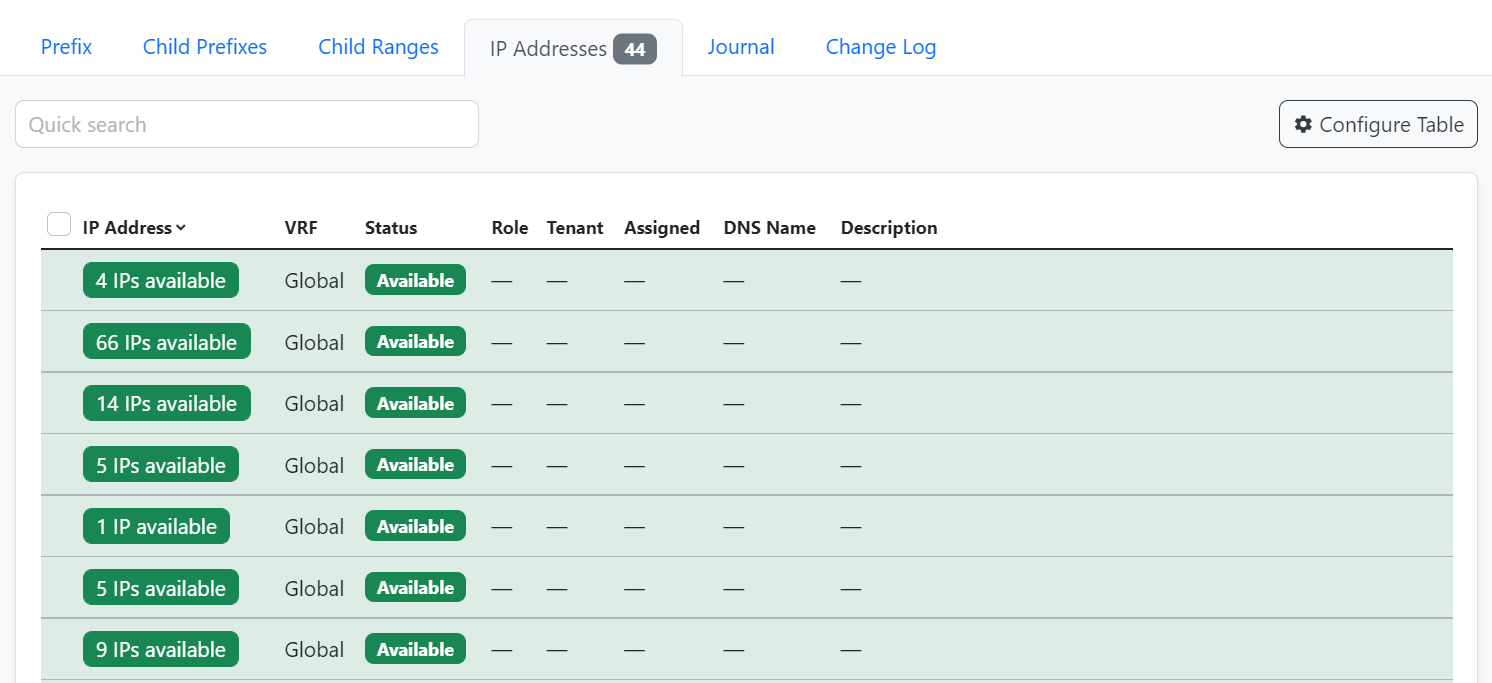 One block between each assigned ip address with count of available