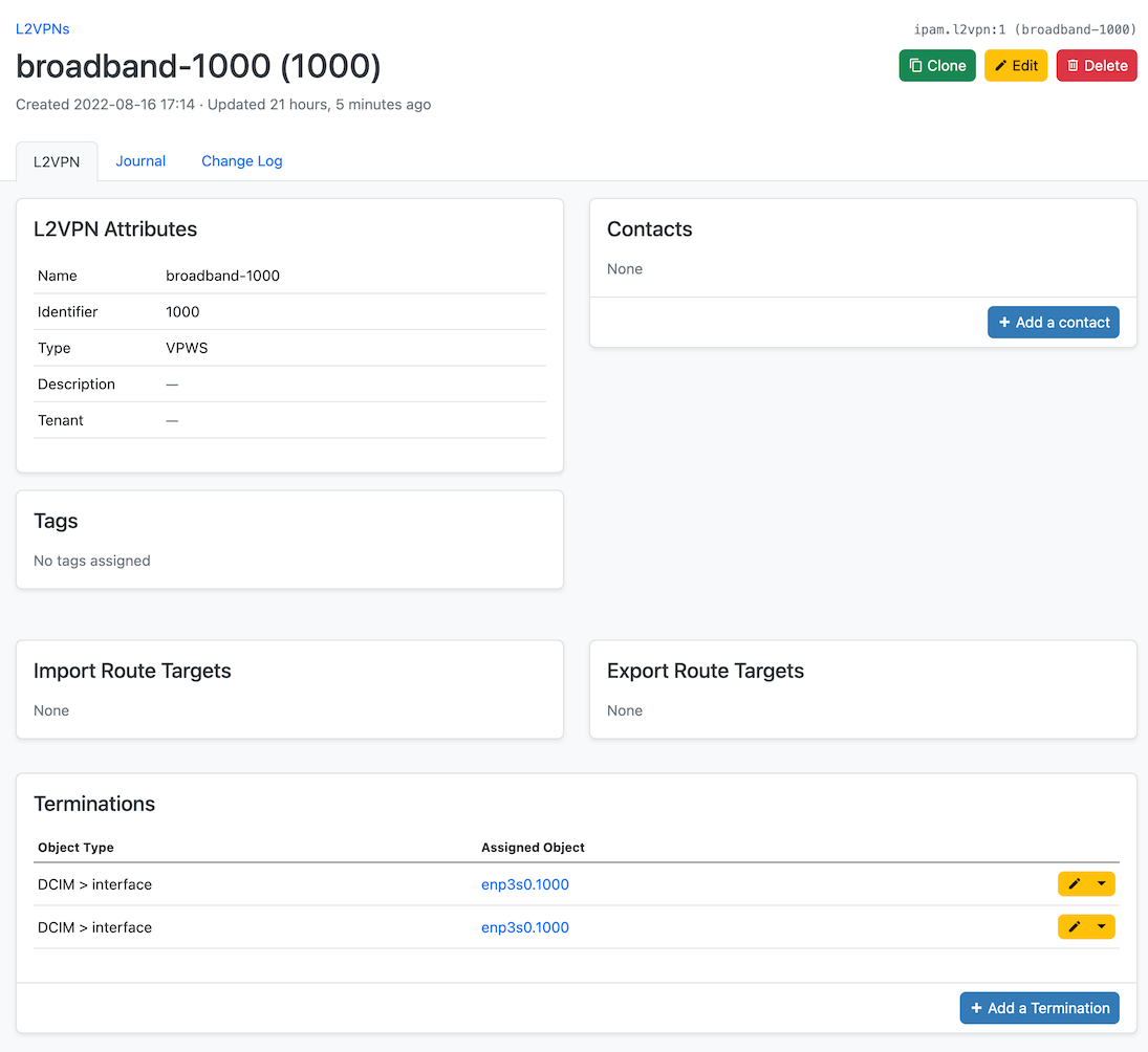 /ipam/l2vpn-terminations/and modify the table there, then return to/ipam/l2vpns/1/, it does show the extra column.If this is set by default, then I vote for "Assigned object parent" to come before "Assigned Object"