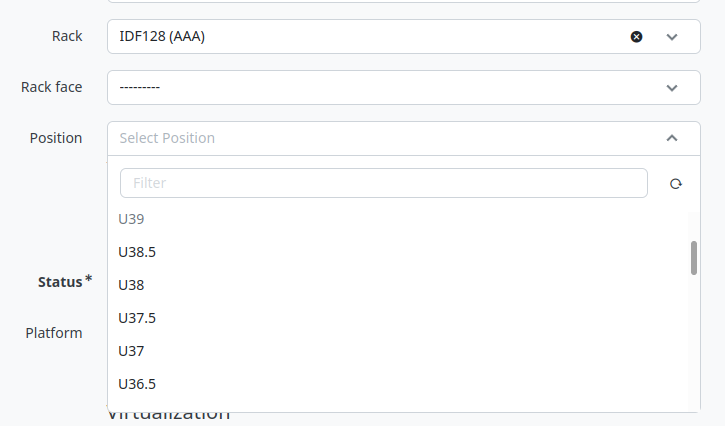 Netbox supports half rack units ss of 3.3.0,