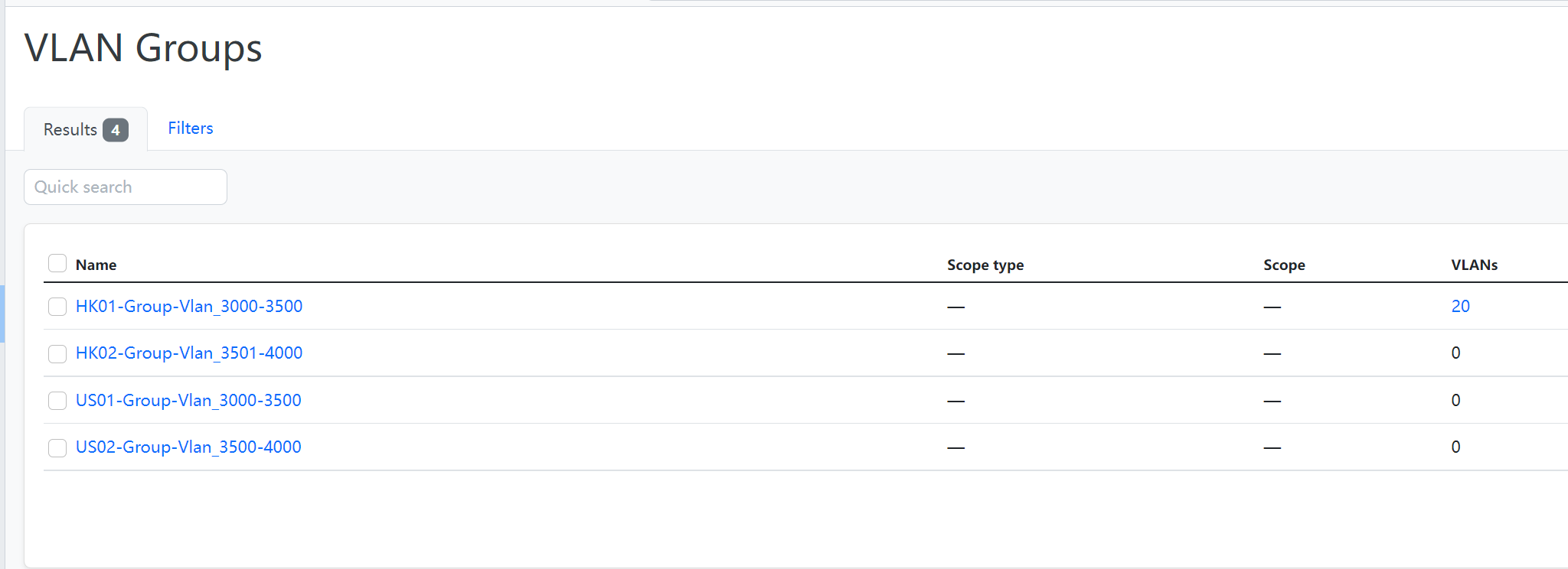 when using API to get the vlangroups information, but get nothing