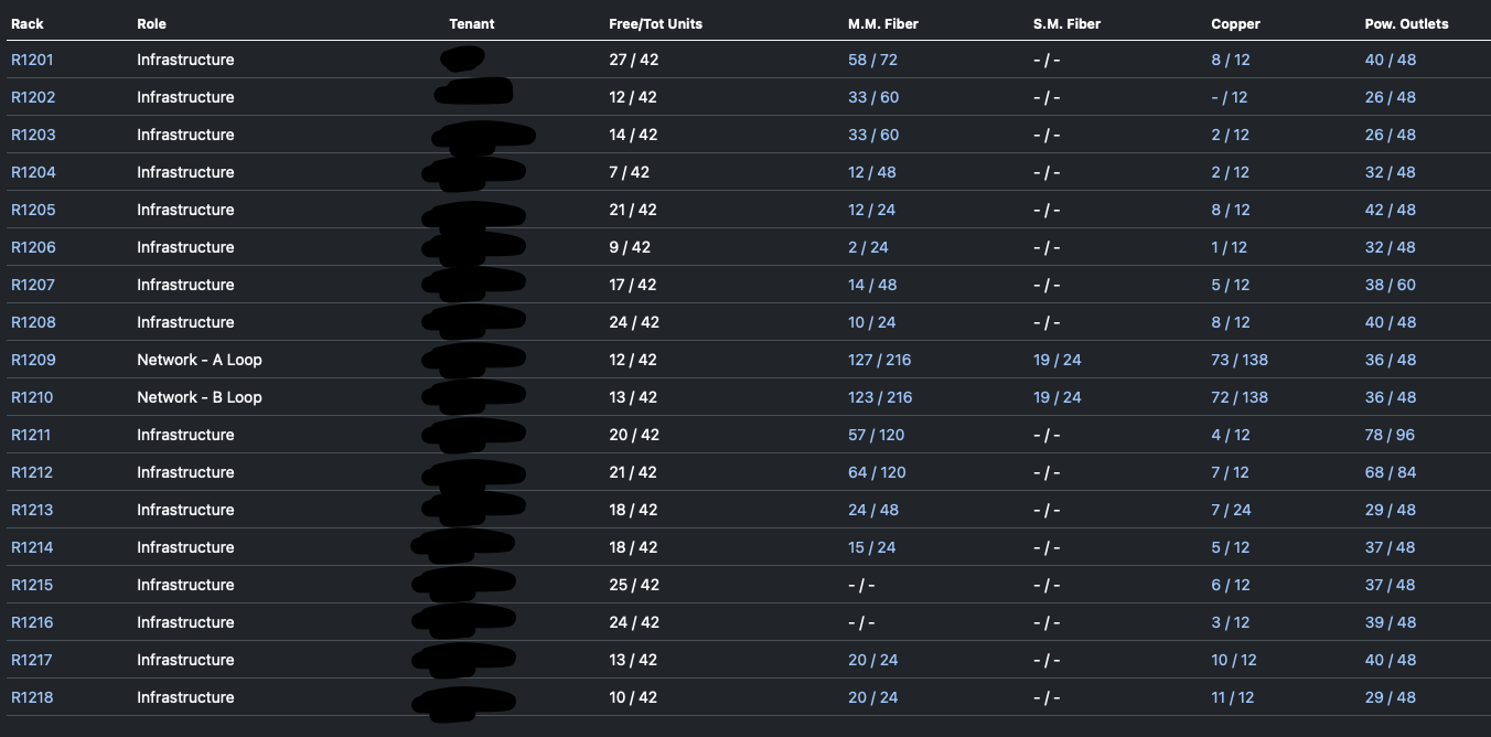 When provisioning a new environment, I need to pick the correct rack where to deploy it. This is mainly done by looking for the required network ports for that environment.