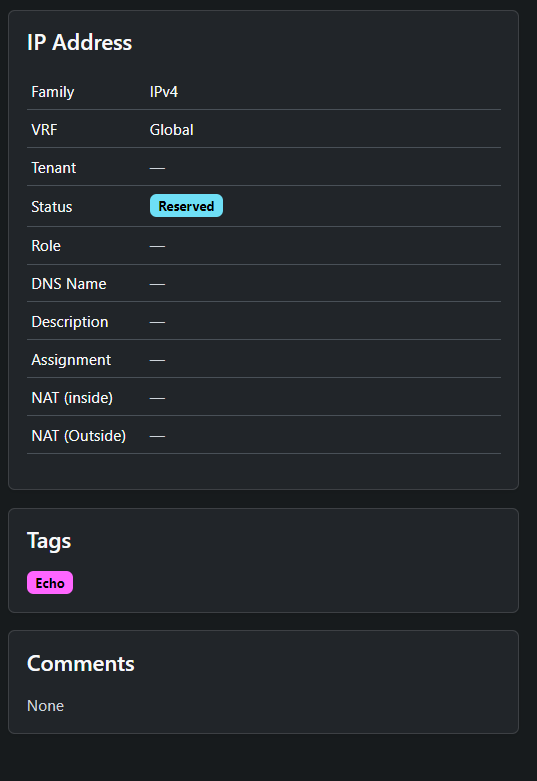 address,tag,status 148.156.37.85/24,Echo,activeExpected Behavior