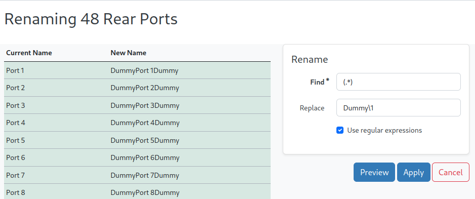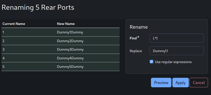 All rear-ports are renamed and prepended with the prefix "Dummy"