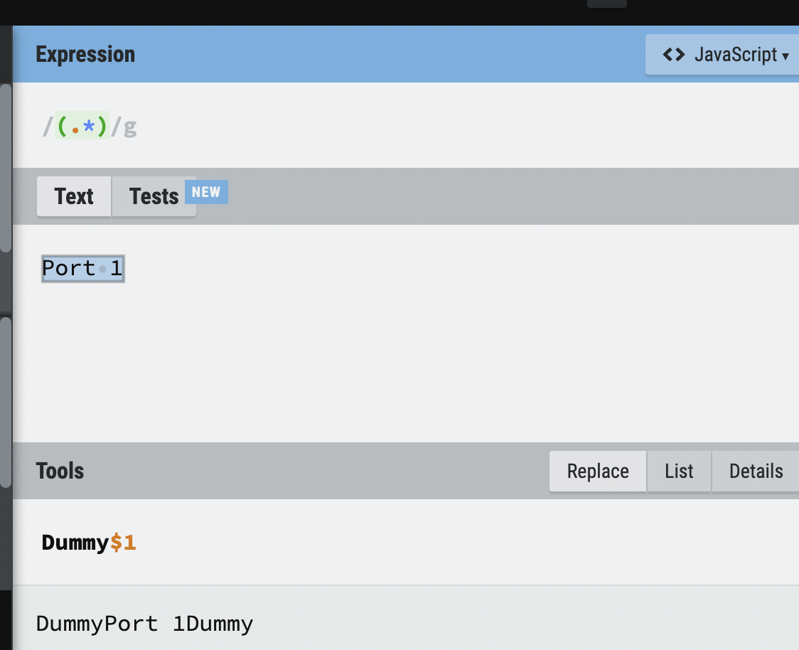Understood. There are several ways to match. But not the matching seems to be the problem, but the replace. Both (your and my example) match the whole source as a group and that retained in the replace by "\1". The question is why is "Dummy" prepended and appended in my example, but not in others.