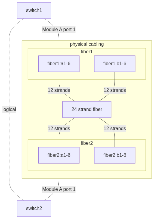 We have modular fiber panels. The 2u variant accepts two modules (a and b)... if at the beginning of a build we populate both with 12 strand modules then a single 24 strand cable is ran. If however we populate only a single 12 strand module and then at a later date another 12 strand module then we are going to have ran 2x 12 strand cables.