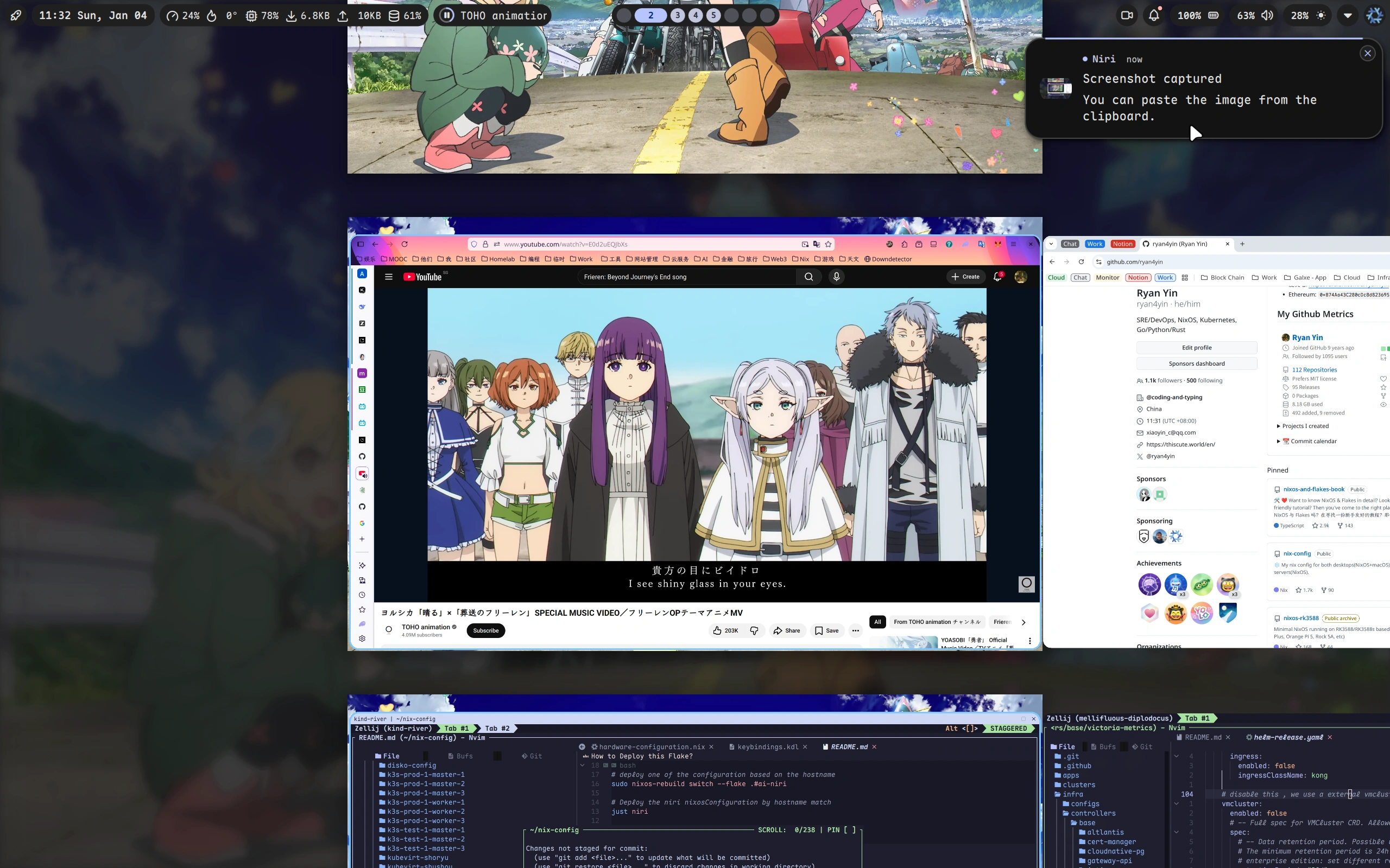 1. NixOS Desktops: NixOS with home-manager, niri, agenix, etc.